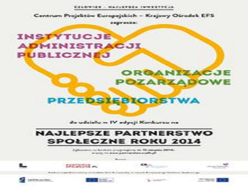 Od 5 maja do 15 sierpnia będzie trwał konkurs Krajowego Ośrodka EFS na „Najlepsze Partnerstwo Społeczne 2014 roku". Konkurs skierowany jest do tych podmiotów, które realizują swoje działania i inicjatywy we współpracy z innymi podmiotami, budując trwałe i efektywne partnerstwa pozytywnie wpływające na rozwój przedsiębiorczości społecznej w Polsce.