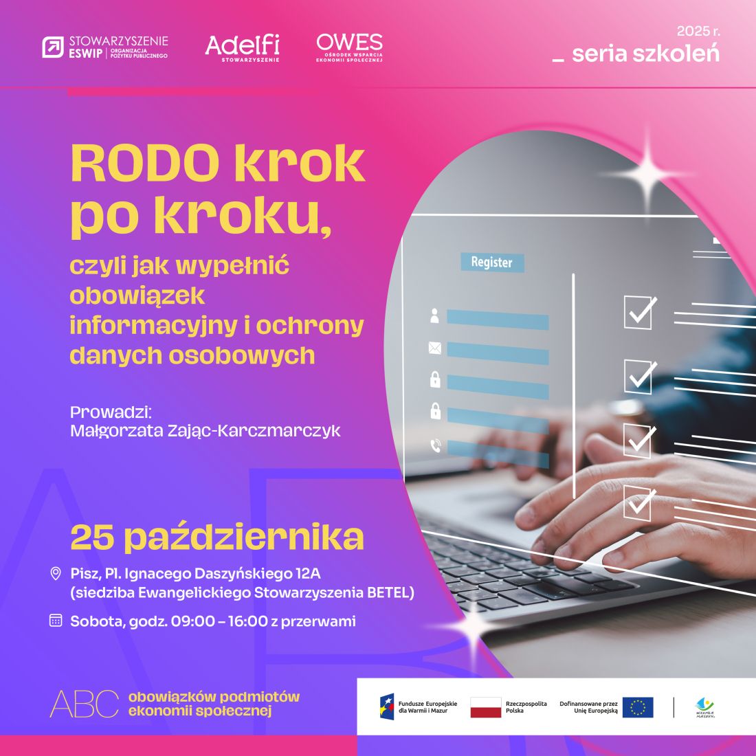 Temat: RODO krok po kroku, czyli jak wypełnić obowiązek informacyjny i ochrony danych osobowych